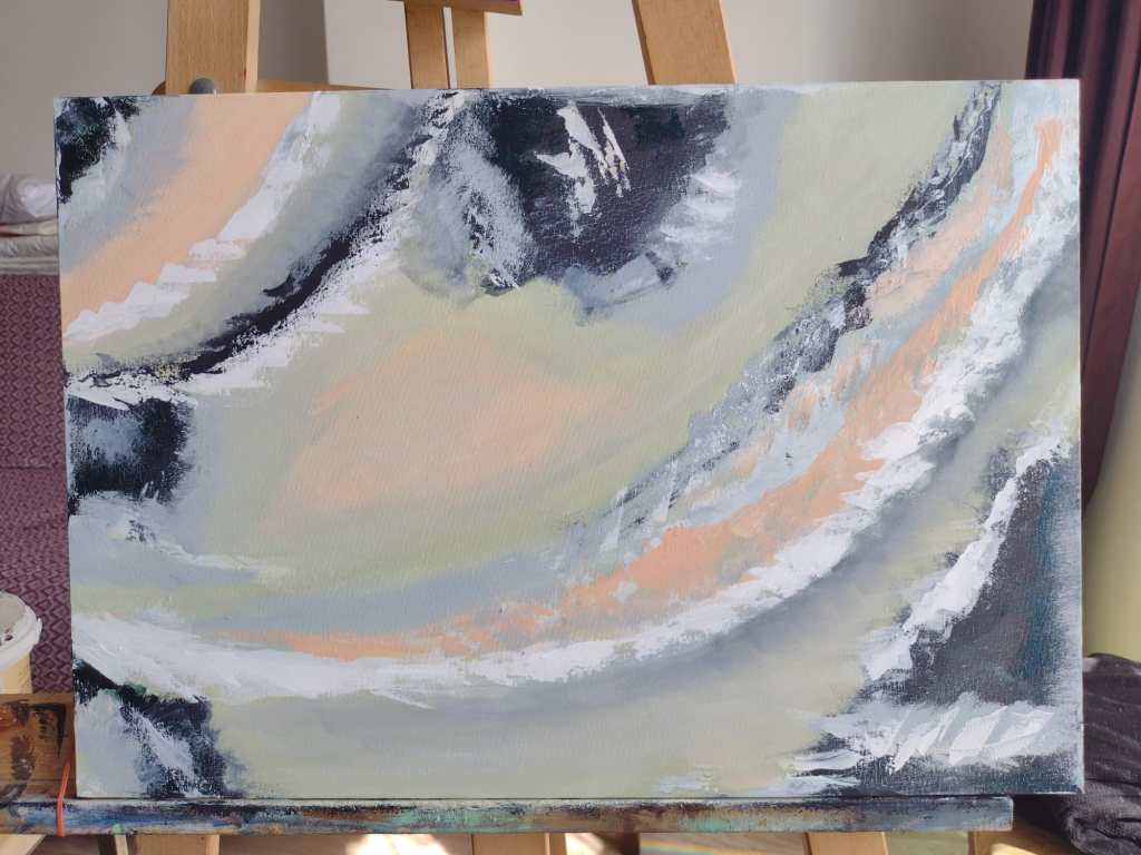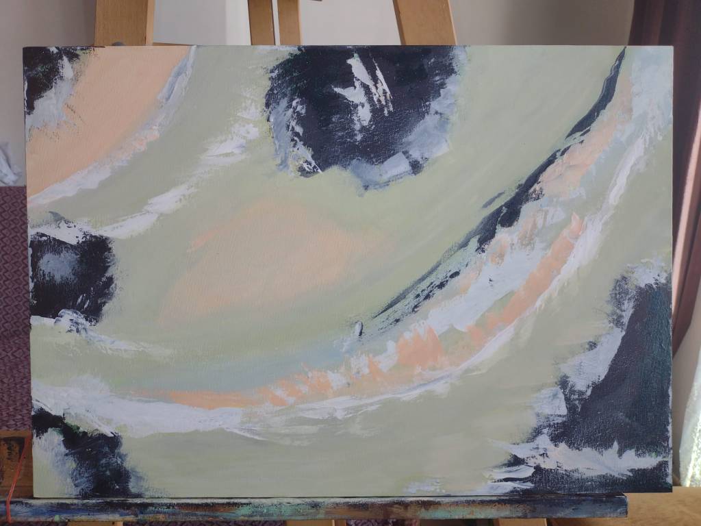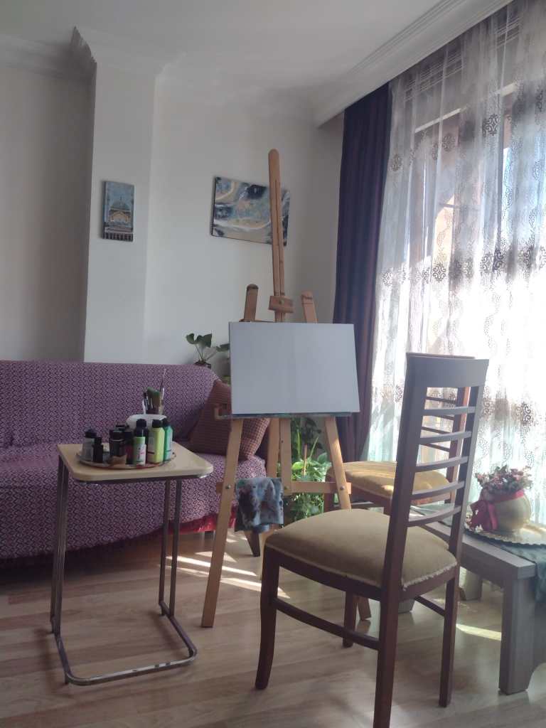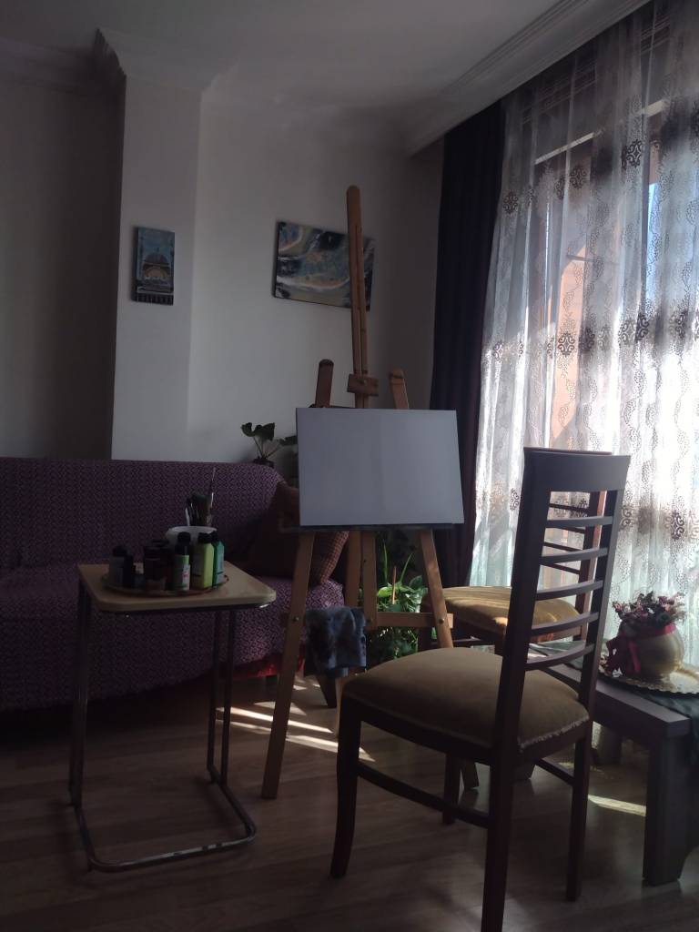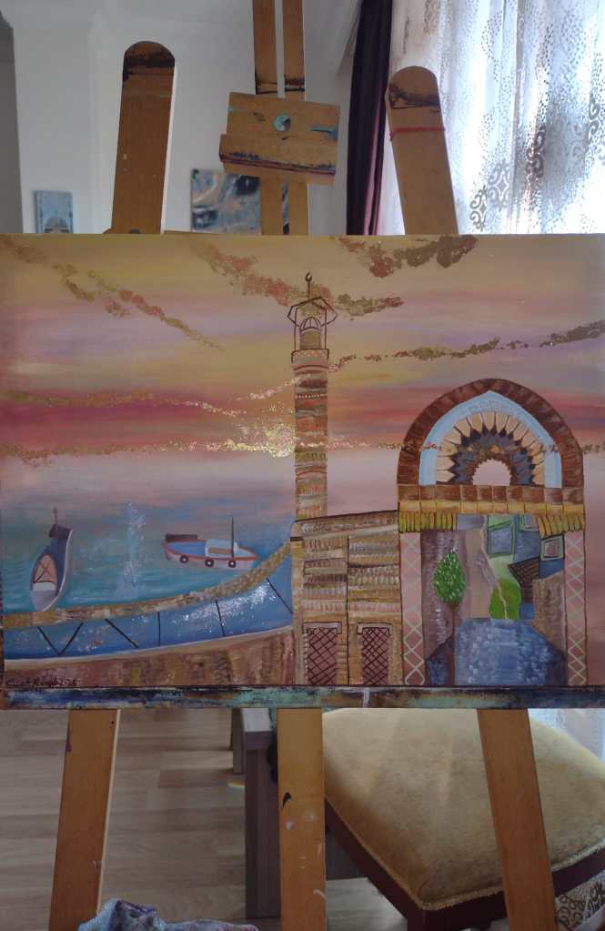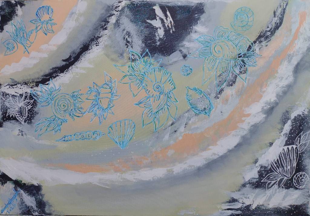 This painting you can order from me exact replica of “Seashells” whether on my dolap app or here on my email nemah.alsayed@ndesignstudyosu.com Price without shipping is approx. 80$.