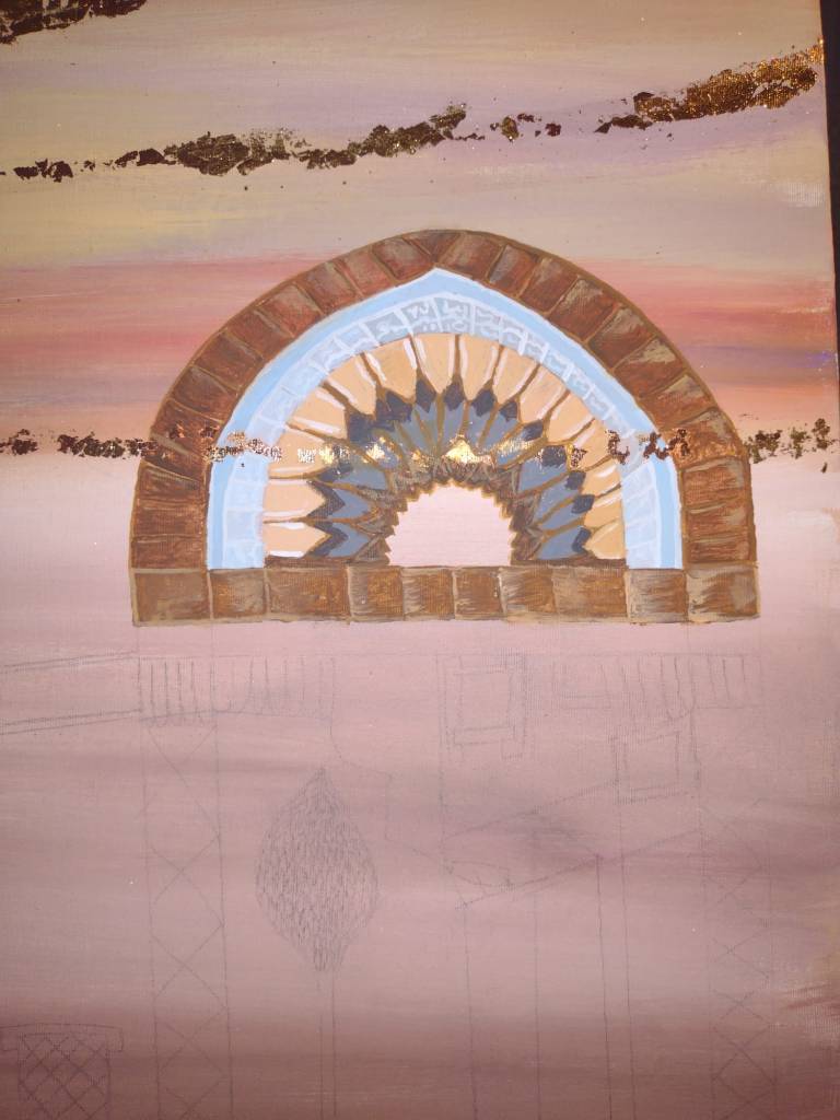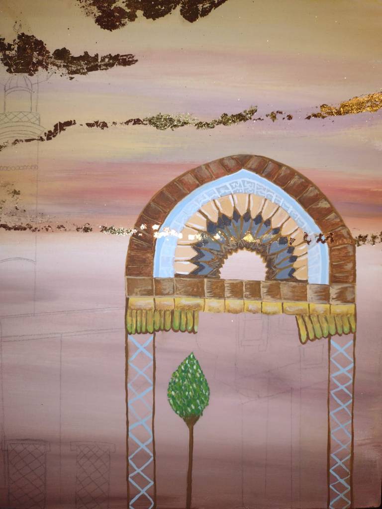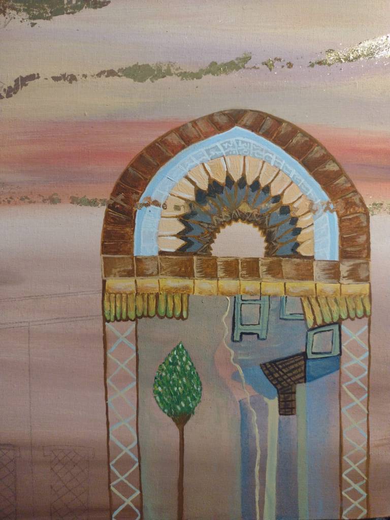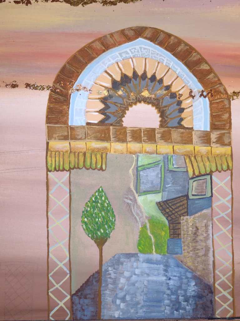 The second and third ones represents the historical town of Jableh in Syria with pronounced elements of the city such as Roman theater and Sufi Mosque arches with white Greek dome architecture style.